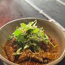 w/ spiced rendang curry, pear, watercress & cumumber salad