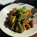 w/ twice cooked agria, garlic shoots & Sichuan pepper salt